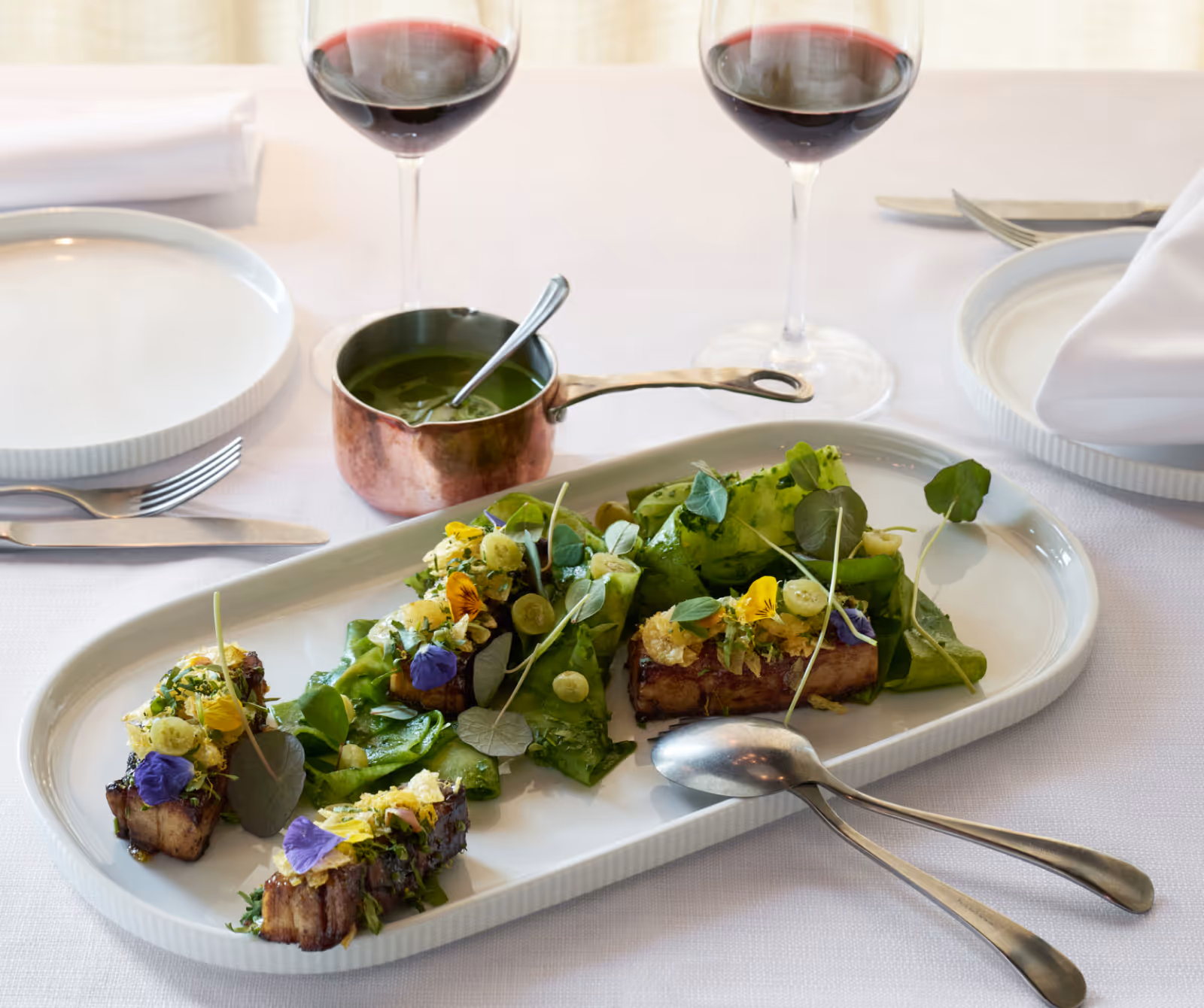 Vores ambition er at ruske fundamentet med velsmagende retter, der er lettere, renere og mere nutidige – dermed også mere relevante. Så vi holder fast i det genkendelige, men udvikler nye vidunderligere og overraskende måltider, der kan nydes med sænkede skuldre og nærved ved bordet.